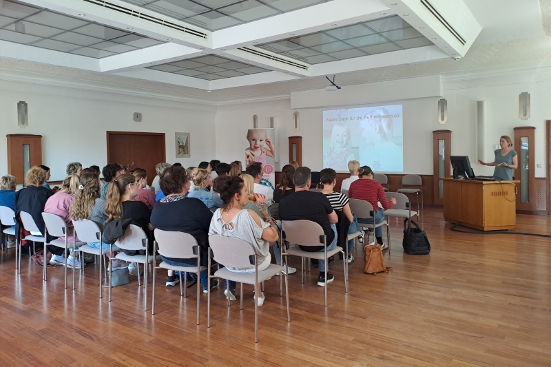 Zu Beginn der Veranstaltung informierte Frau Dr. Loderstedt (HNO-Fachärztin in Wanzleben) die Anwesenden ausführlich zu den Themen "Wie funktioniert Hören? Anatomie und Physiologie" und "Hörstörungen bei Kindern - Diagnostik, Therapie und Hörfrühförderung". Herr Prof. Dr. Vorwerk (Leitender Oberarzt der Universitätsklinik für Hals-, Nasen- und Ohrenheilkunde, Kopf- und Halschirurgie Magdeburg) erklärte anschließend "Audiologische Methoden des Neugeborenenhörscreening" und Frau PD Dr. Rißmann (Ärztliche Leiterin Fehlbildungsmonitoring Sachsen-Anhalt, Trackingsstelle Neugeborenenhörscreening Sachsen-Anahlt) präsentierte die "Ergebnisse des Hörscreening für Sachsen-Anhalt". Zum Abschluss der Veranstaltung stellte Frau Dr. Vorwerk (Oberärztin der Universitätsklinik für Hals-, Nasen- und Ohrenheilkunde, Kopf- und Halschirurgie Magdeburg, Arbeitsbereich Phoniatrie und Pädaudiologie) praxisnah "Beispiele aus der Klinik" vor.